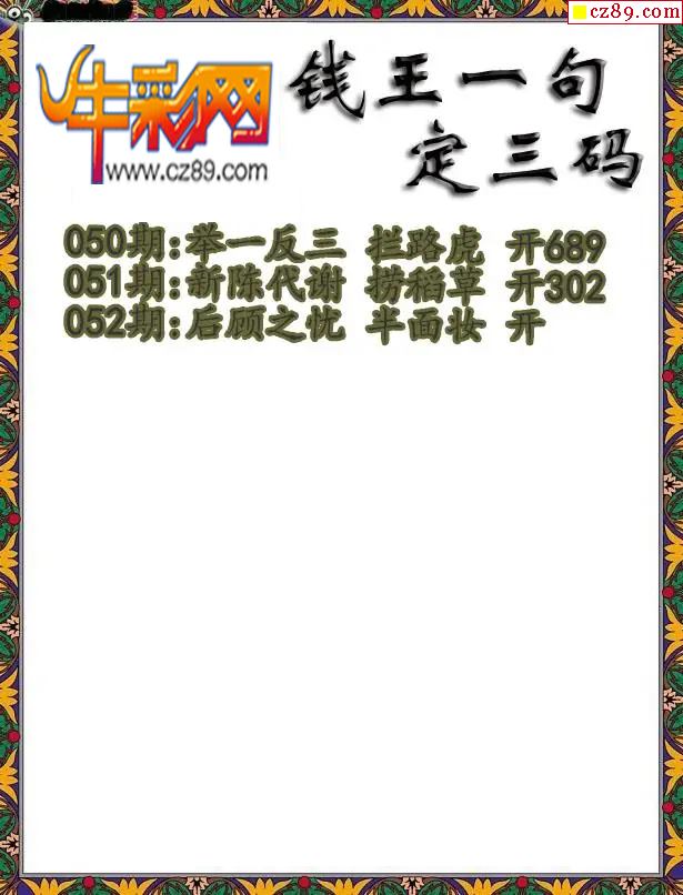 首页 > 福彩3D图谜 > 福彩3D2026052期钱王一句定三码字图谜